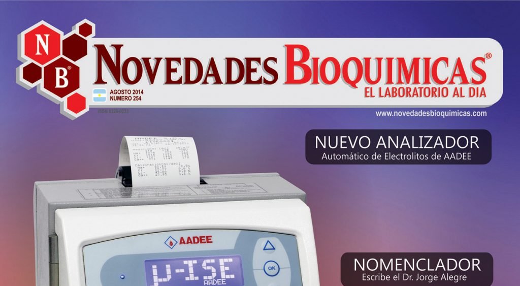 Te invitamos a suscribirte a nuestra nueva edición online: online@novedadesbioquimicas.com * AGOSTO 2014: * NUEVO ANALIZADOR AUTOMATICO DE ELECTROLITOS DE AADEE * NOMENCLADOR BIOQUIMICO UNICO: Escribe el Dr. Jorge Alegre * COMIENZA EL NEA II EN CORRIENTES.