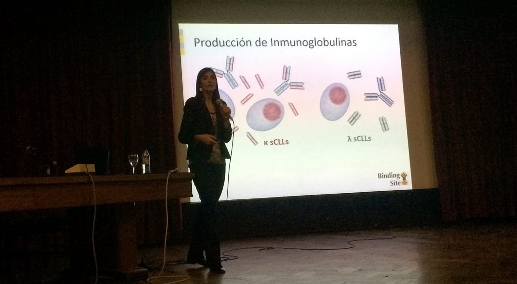 El pasado 7 de Octubre, en el marco del Congreso Científico Profesional de Bioquímica de la Provincia de Córdoba se realizó, con una multitudinaria asistencia de profesionales, el Simposio Diagnóstico y seguimiento del mieloma múltiple con cadenas ligeras libres en suero, criterios actualizados y revisión de casos clínicos, dictado por la Dra. Florencia Delgado, PhD – Directora de Asuntos Científicos – Latinoamérica – The Binding Site Group Ltd.