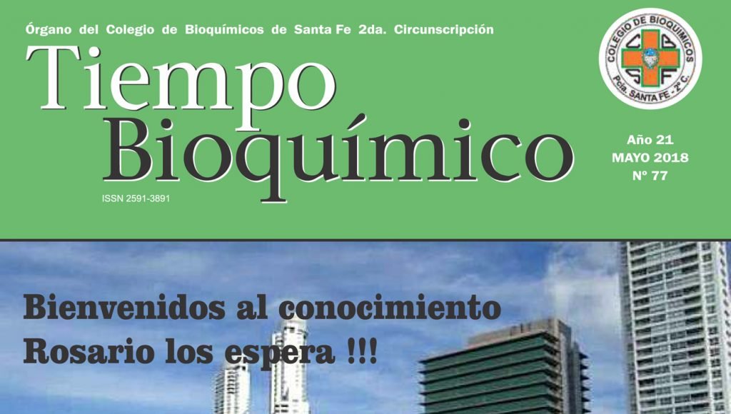 Tiempo Bioquímico es la revista oficial del Colegio Bioquímico de Santa Fe Circ. II (Rosario). Salió la edición 77, mayo 2018. Está dirigida a todos los colegiados de la circunscripción y contiene valiosa información institucional y todo lo relativo al Congreso, que se organiza para junio 2018. Un ejemplar imperdible, que todos los profesionales de la zona ya tienen en su mesada.