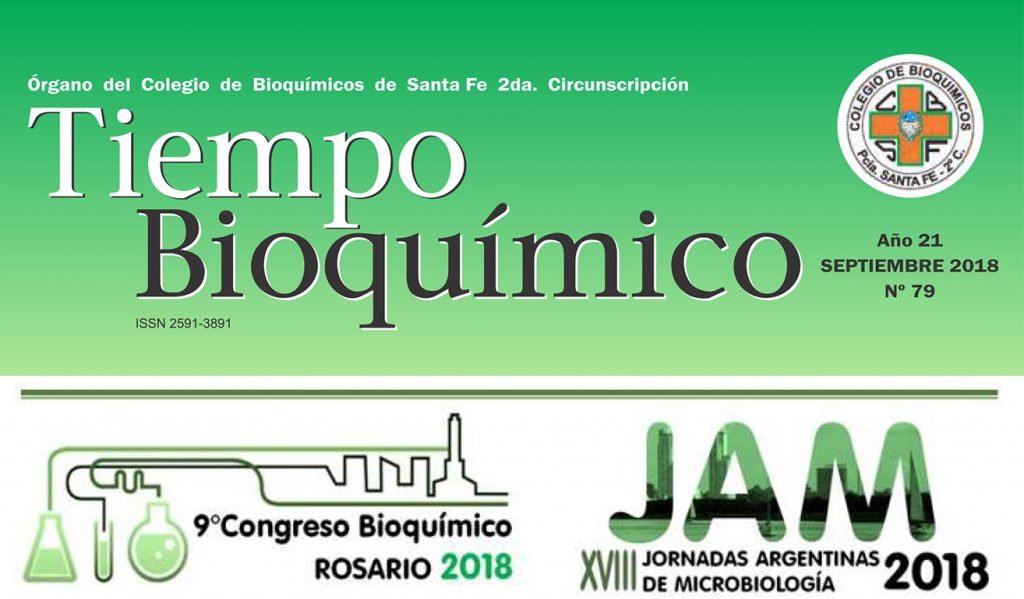 Salió Tiempo Bioquímico N°79, septiembre 2018. Una Edición especial (Como todas !!!) que contiene valiosa información sobre las actividades del Colegio Bioquímico de Santa Fe Circ. II (Rosario).Las fotos del 9° Congreso Bioquímico Rosario 2018 que se realizó simultáneamente con las XVIII Jornadas Argentinas de Microbiología y las Segundas Jornadas Provinciales de Redes de Laboratorio y Epidemiología. Son 24 páginas imperdibles !!!