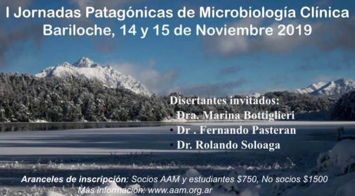 Las Primeras Jornadas Patagónicas de Microbiología Clínica son organizadas por la Filial SUR, de la Asociación Argentina de Microbiología y tendrán lugar en el Hospital Zonal Bariloche, Dr. Ramón Carrillo, los días 14 y 15 de noviembre de 2019, de 8:30 a 20:00 hs.