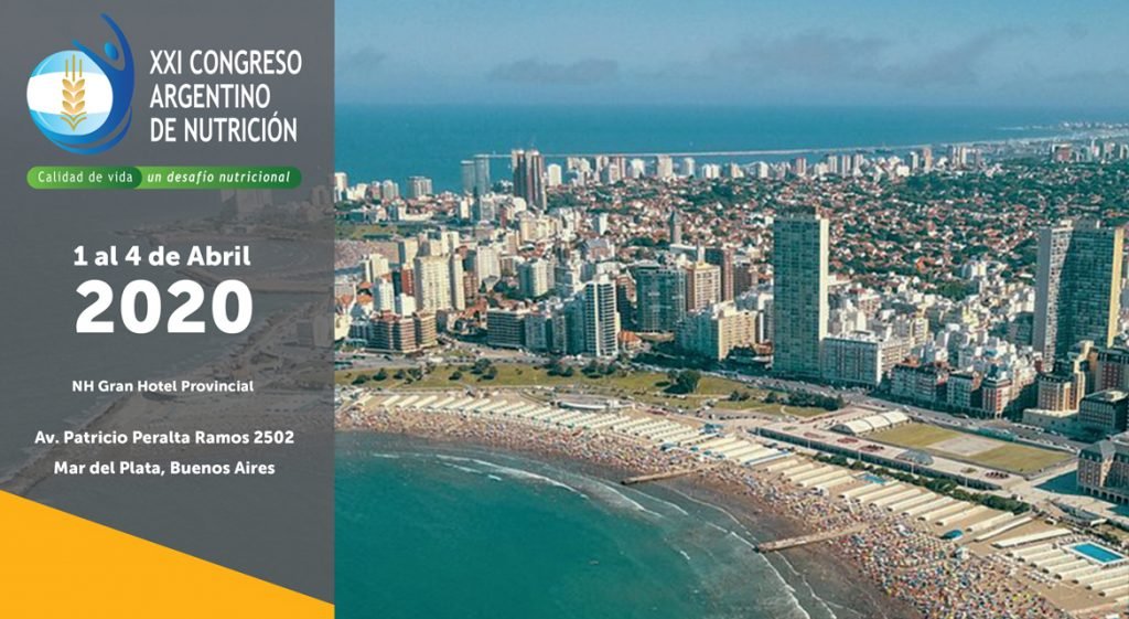 El XXI Congreso Argentino de Nutrición se llevará a cabo del 1 al 4 de abril de 2020 en la ciudad de Mar del Plata.