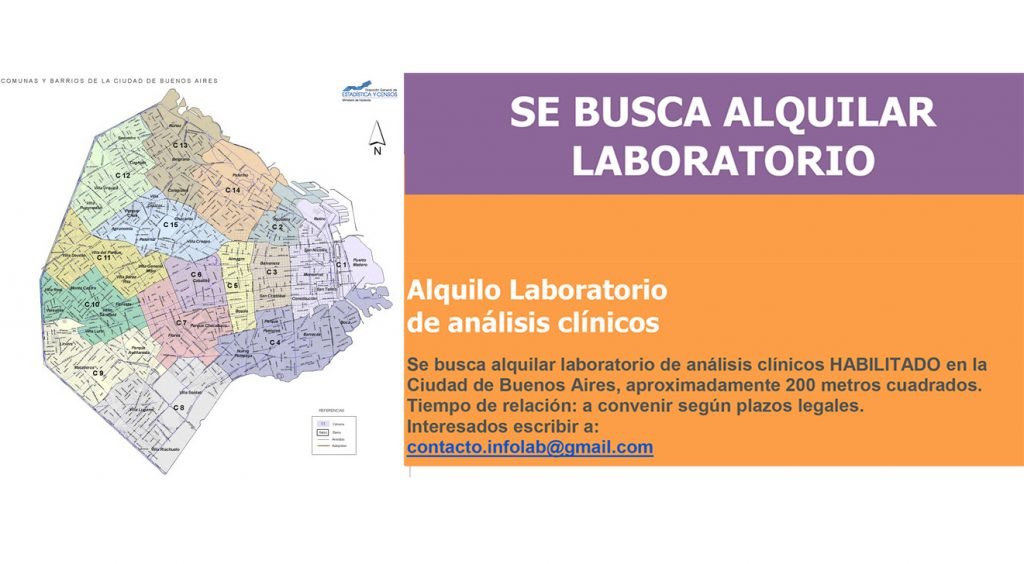 Se busca para alquilar laboratorio de análisis clínicos habilitado en la Ciudad de Buenos Aires, de aproximadamente 200 m2.