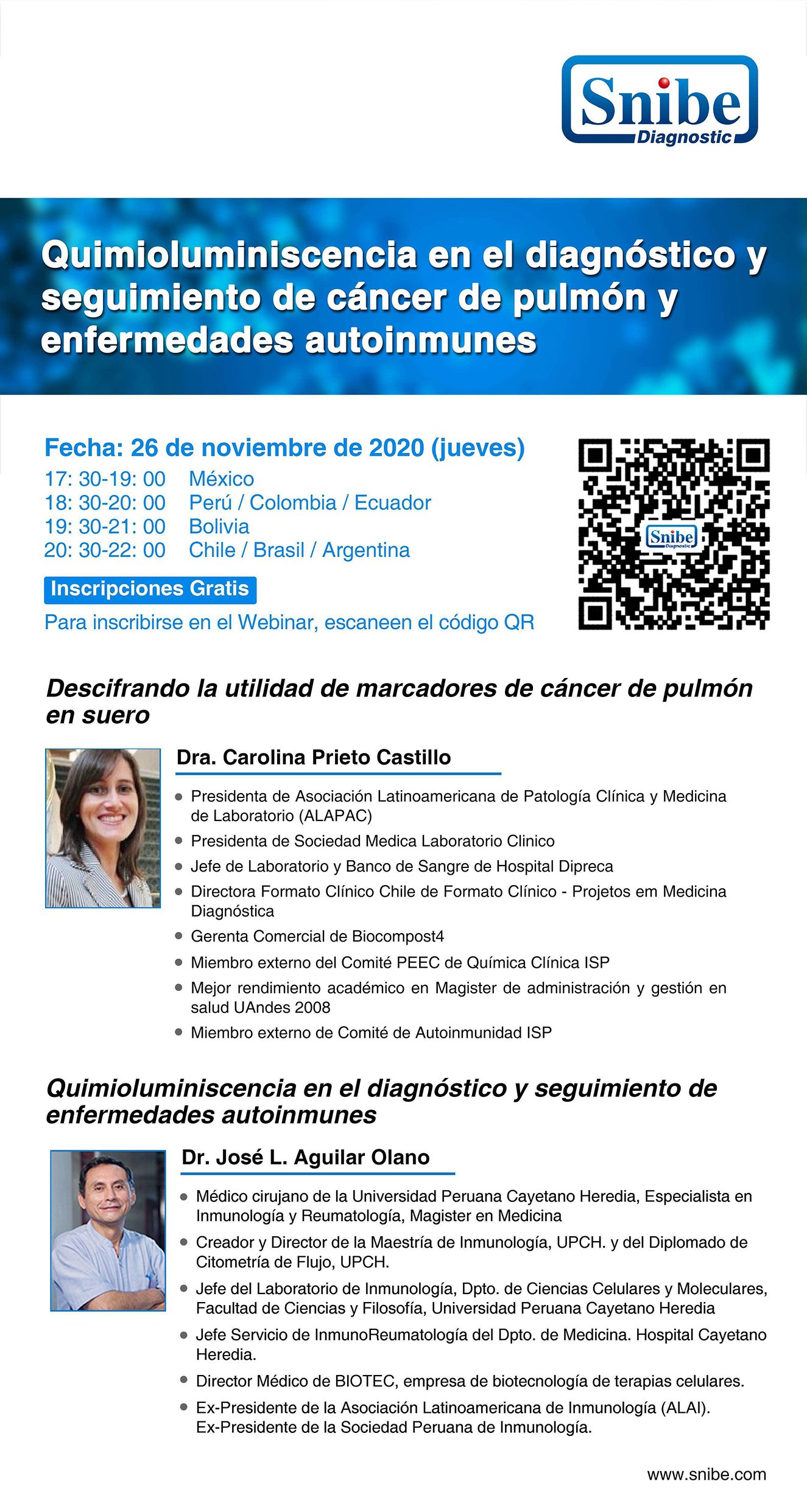 …Y para toda Latinoamérica, la doctora Carolina Prieto Castillo y el doctor José Aguilar Olano disertarán sobre temas de su especialidad el próximo jueves 26. Para inscribirte scanea el código QR de la imagen.