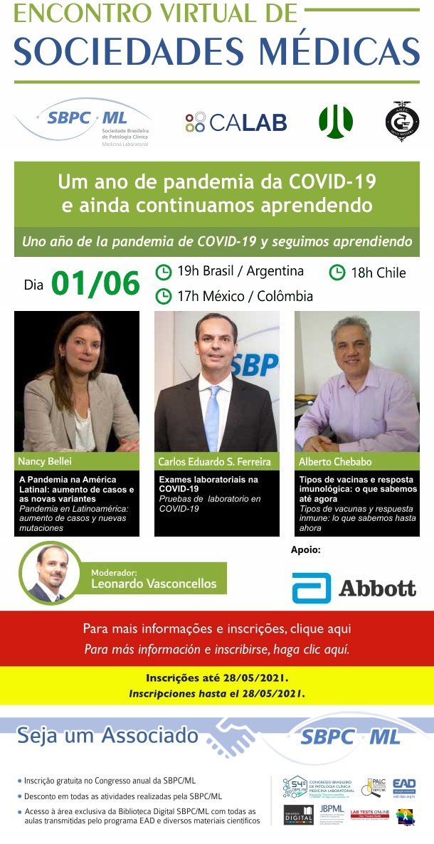 La SBPC organiza “Un año de la pandemia COVID-19 y seguimos aprendiendo” el 1° de junio, 19hs. (hora Argentina), Encuentro virtual de Sociedades Médicas.