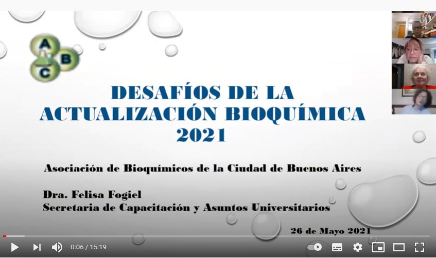 Exposición de la Dra. Felisa Fogiel, Secretaria de Capacitación y Asuntos Universitarios de la Asociación de Bioquímicos de Buenos Aires, en el Tercer Foro Bioquímico: “Cómo se construyó en las instituciones la respuesta académica, de la presencialidad a la virtualidad”.