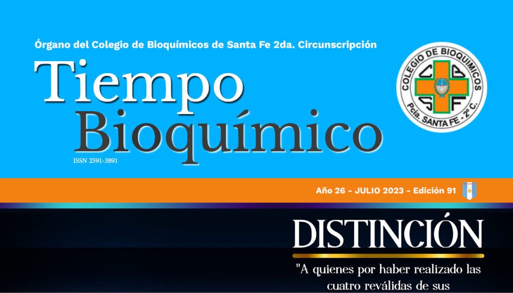 Tiempo Bioquímico, órgano oficial del Colegio de Bioquímicos de Santa Fe, 2da. Circunscripción. Salió la edición N° 91, julio 2023.