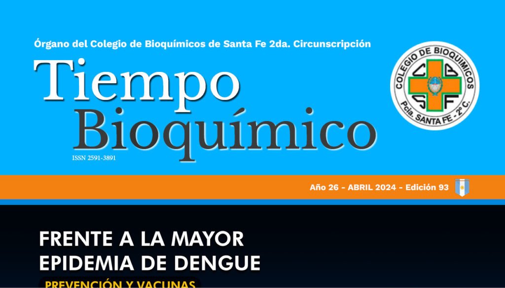 Tiempo Bioquímico N° 93, abril 2024, es el órgano oficial del Colegio de Bioquímicos de Santa Fe, 2da. Circunscripción.