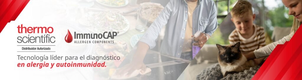 • ImmunoCAP™ Gold Standard, referencia mundial en diagnóstico de alergias, que permite identificar sensibilizaciones con un único análisis de sangre, facilitando el abordaje de patologías como asma, dermatitis atópica, alergias alimentarias y otras manifestaciones alérgicas.